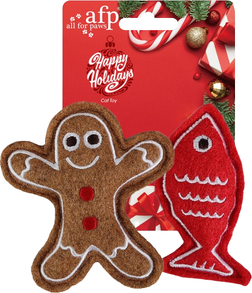 all for paws Happy Holidays - Giocattolo per Gatti, Pan di Zenzero e Pesce