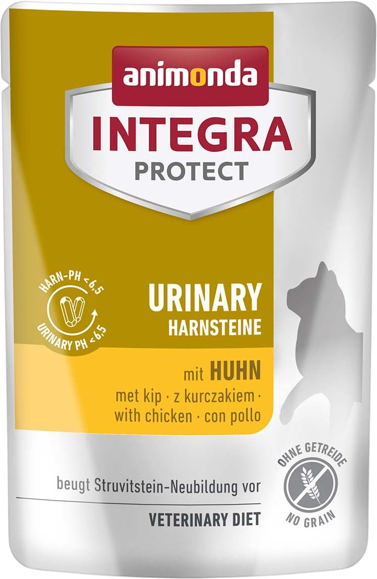 Integra Protect Urinary è uno speciale alimento umido per ridurre i calcoli di struvite nei gatti adulti che hanno avuto problemi di calcoli urinari. Per garantire che i calcoli non si formino di nuovo, il pH dell'urina del gatto deve essere portato al di sotto del valore 6,5. Questo alimento umido speciale si distingue per i minerali bilanciati e per il contenuto di magnesio e fosforo adattato alle esigenze del gatto. Il prodotto non contiene glutine.
