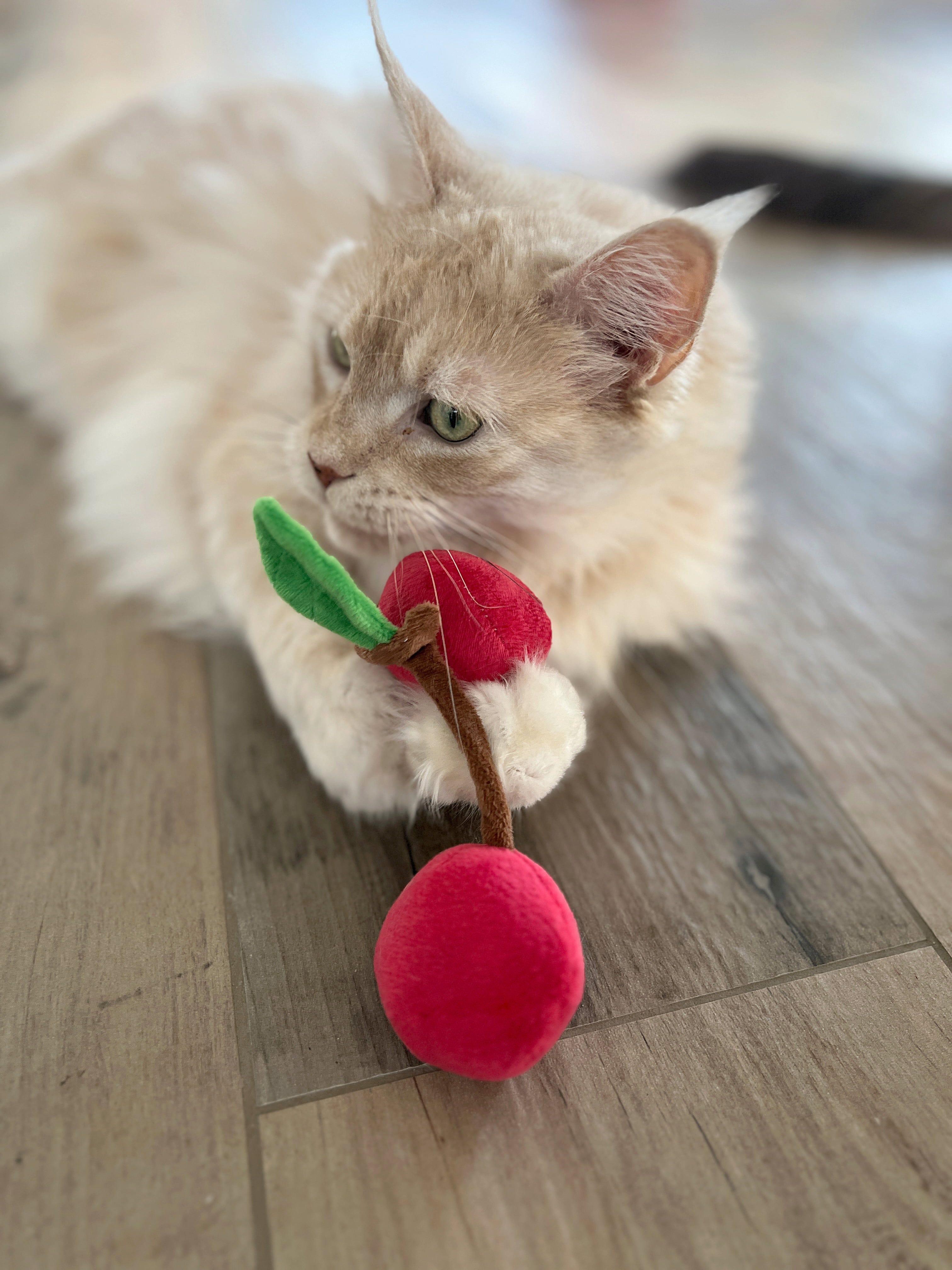 Le ciliegie più dolci... si trovano spesso nella cuccia del tuo gatto. Queste ciliegie non solo deliziano per il loro grazioso design, ma anche per le loro qualità: un ripieno di erba gatta e matatabi le rende semplicemente irresistibili per i gatti domestici giocosi.
