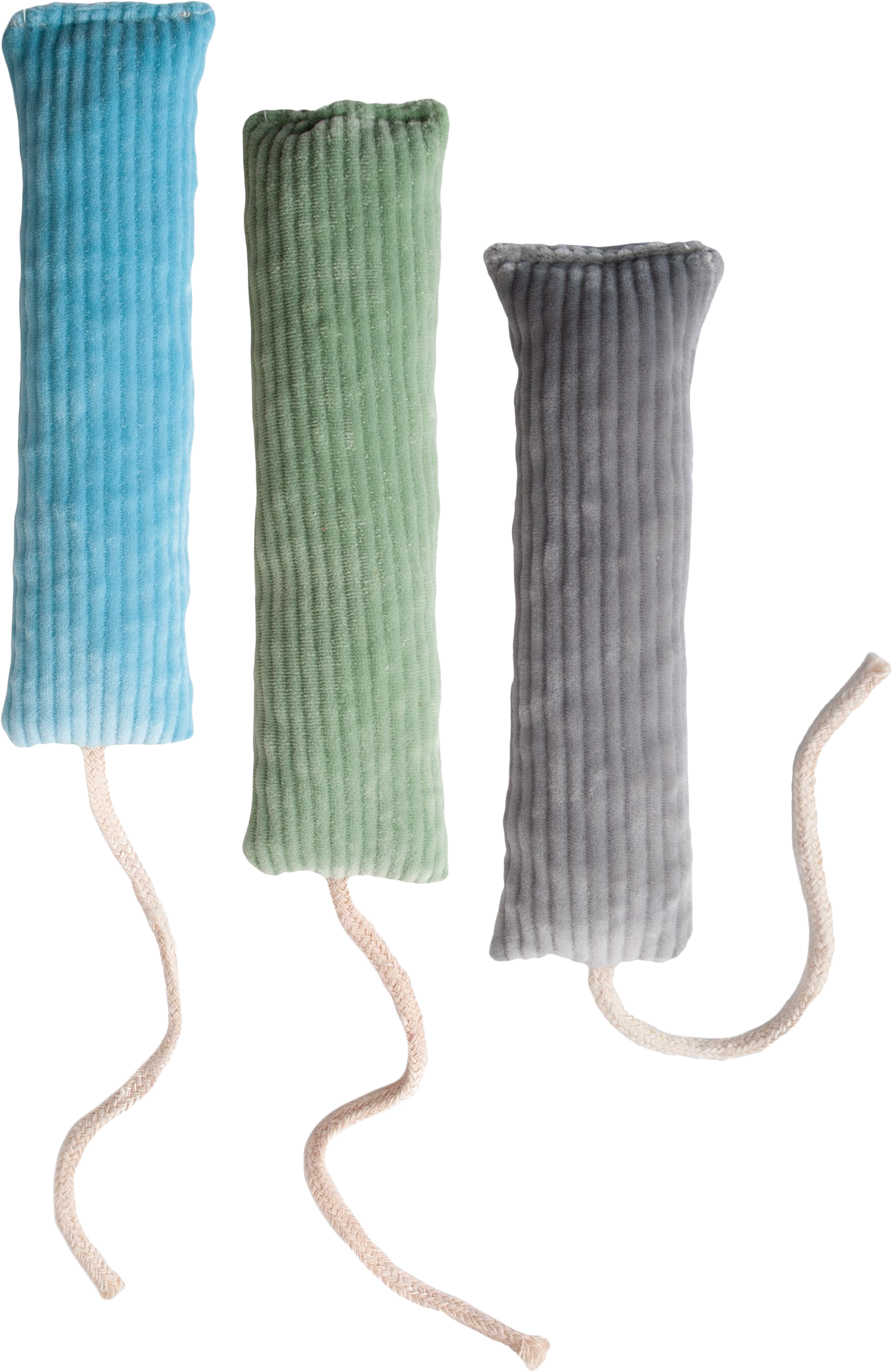 Questi cuscini realizzati in robusto velluto a coste e imbottiti con pula di farro naturale e radice di valeriana sono una valida alternativa ai classici topolini da acchiappare. Il massimo divertimento è garantito per il tuo amico felino!