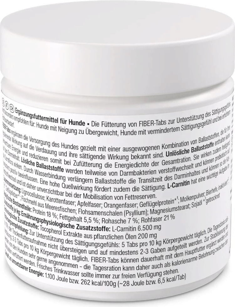 Queste compresse ad alto contenuto di fibre hanno un effetto saziante e possono supportare la normale funzione digestiva. Sono ideali per cani con un ridotto senso di sazietà, tendenza al sovrappeso o un aumentato fabbisogno di fibre grezze.