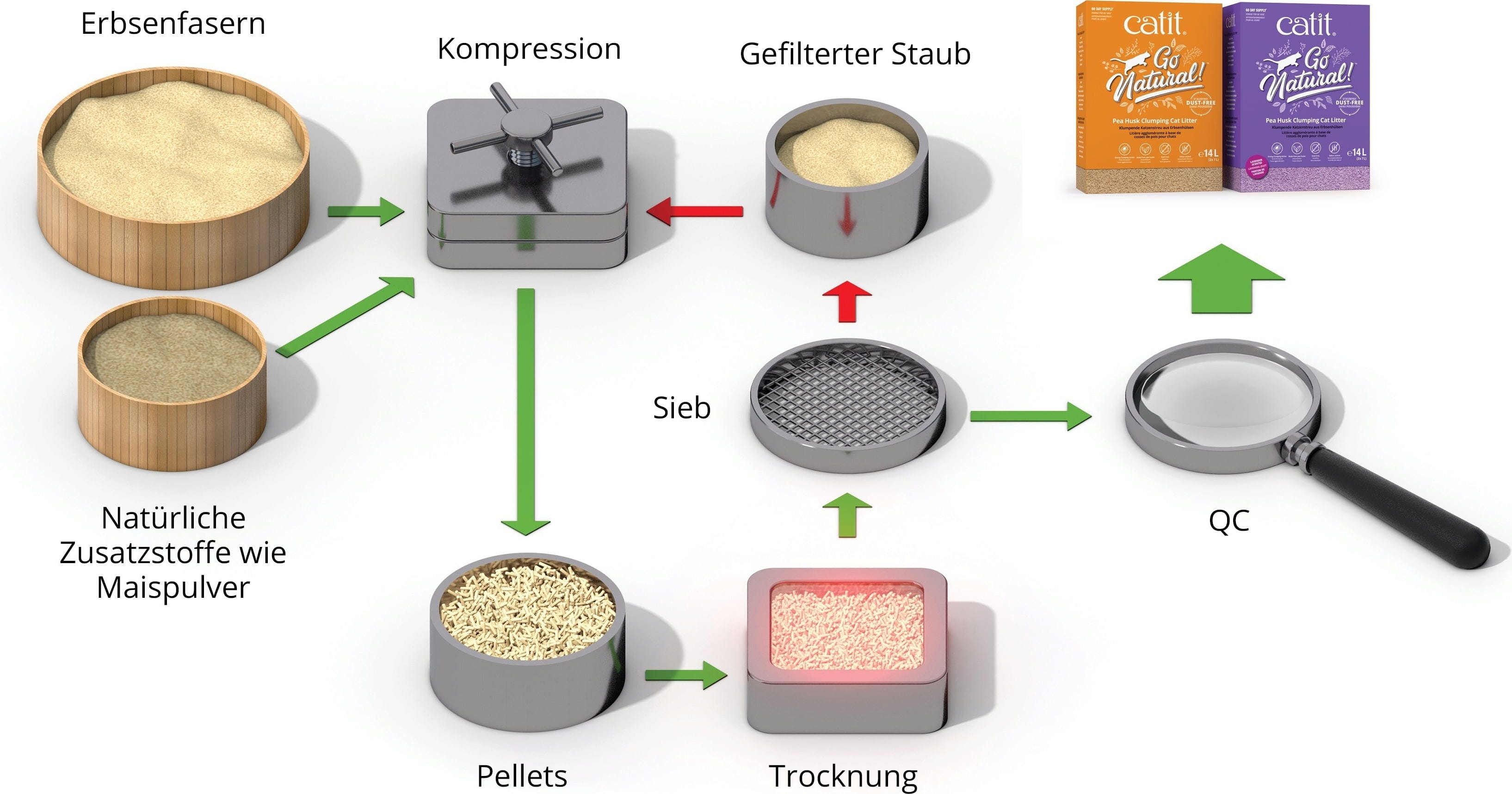 Nota: Catit utilizza anche altri ingredienti alimentari come amido, polvere di mais e gomma di guar in questa lettiera - che verrebbero altrimenti gettati. Anche la produzione rimane a basso spreco e presta attenzione alla riduzione di CO2.