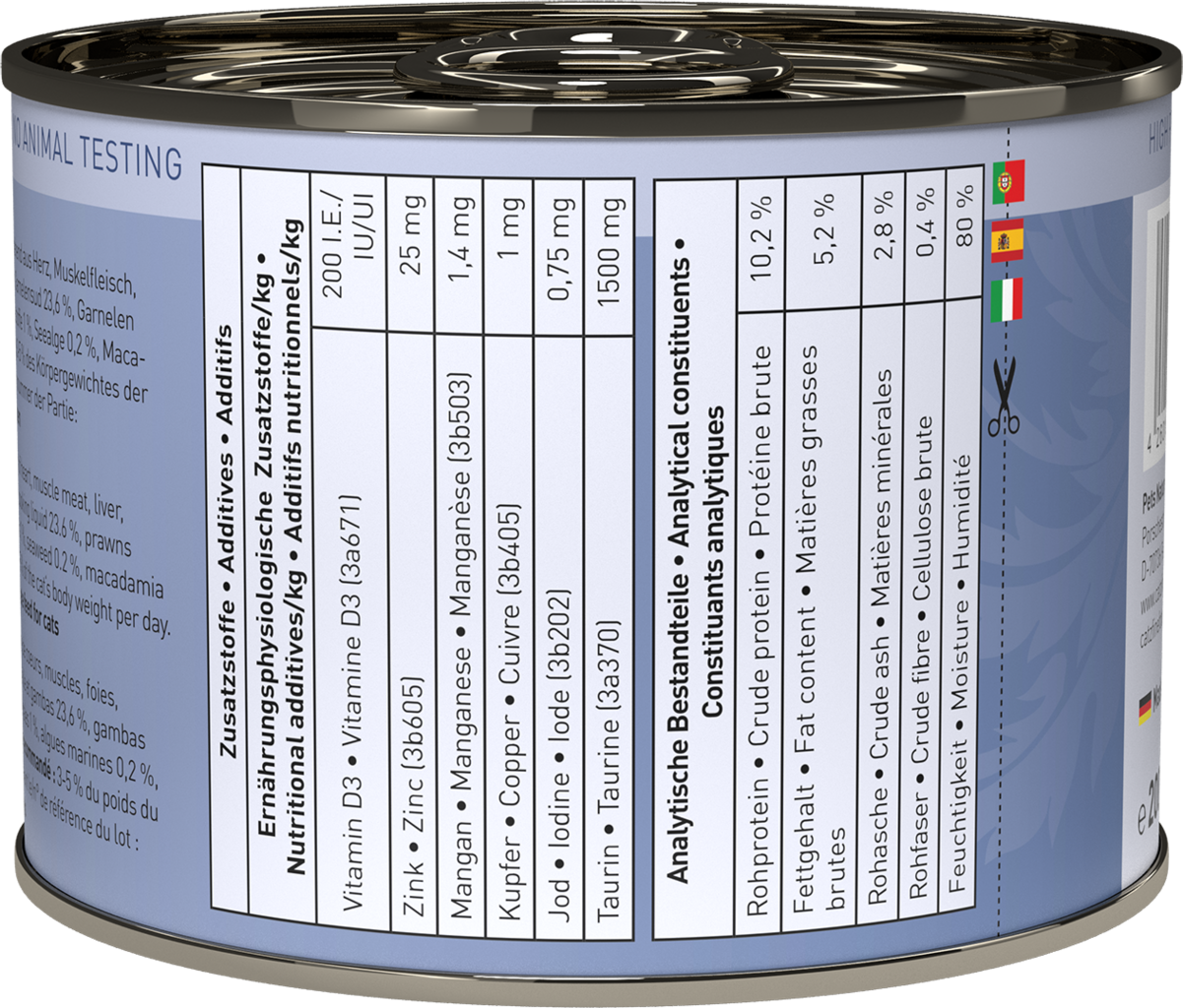 Con questo cibo umido di alta qualità, puoi concedere al tuo gatto un piacere davvero speciale, coccolandolo con ingredienti naturali selezionati di qualità superiore e un gusto squisito. Formulato secondo il concetto di preda, questo cibo rispetta la natura del tuo gatto, riportando così un pezzo di autenticità nella sua vita.