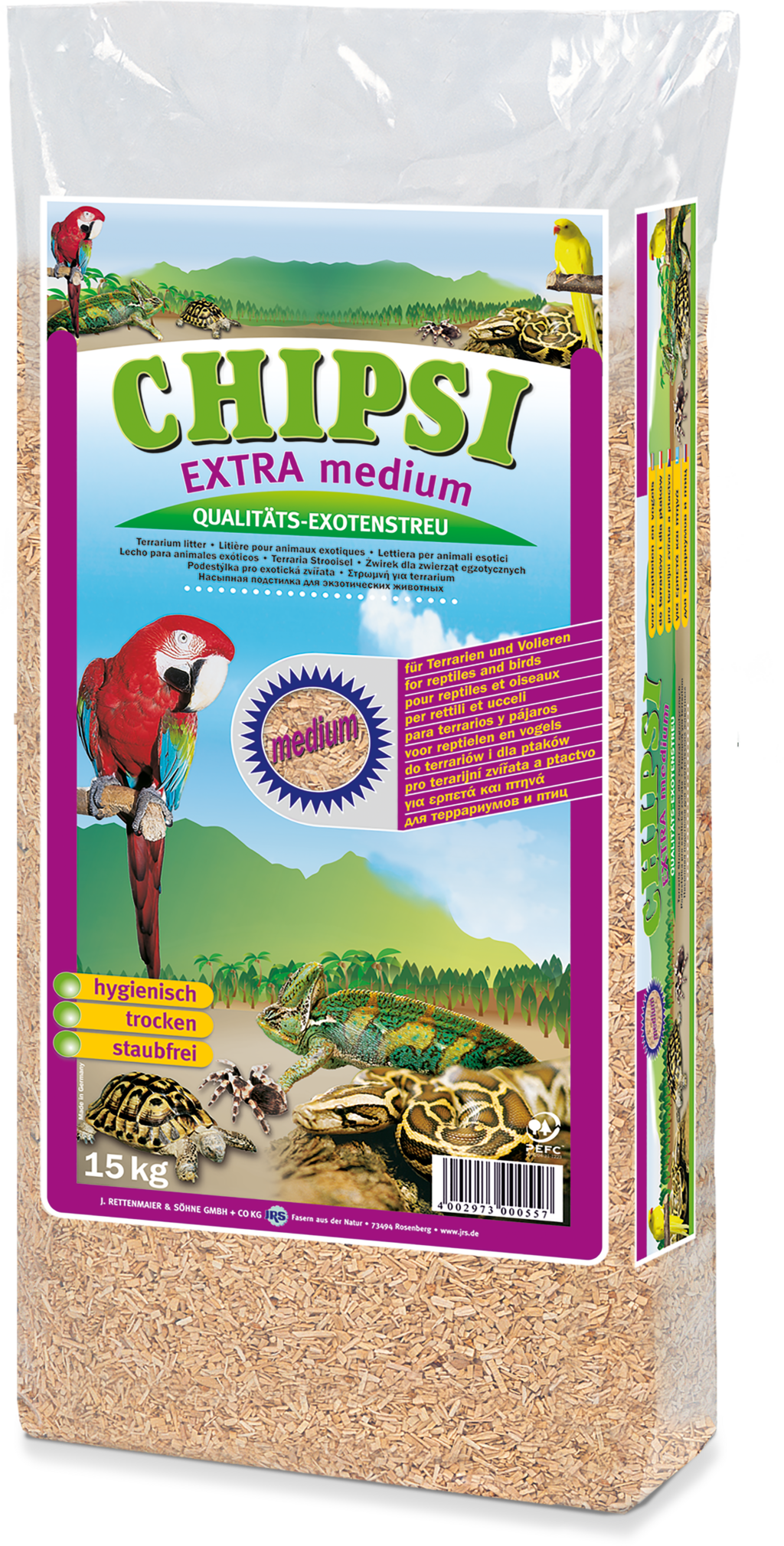 EXTRA MEDIUM di CHIPSI è una lettiera di alta qualità per terrari asciutti e voliere. È realizzata in legno di faggio, un innovativo prodotto in legno massello pensato per animali esotici come iguane, pappagallini, alcune specie di pappagalli e piccoli animali particolarmente sensibili come ragni o tartarughe.