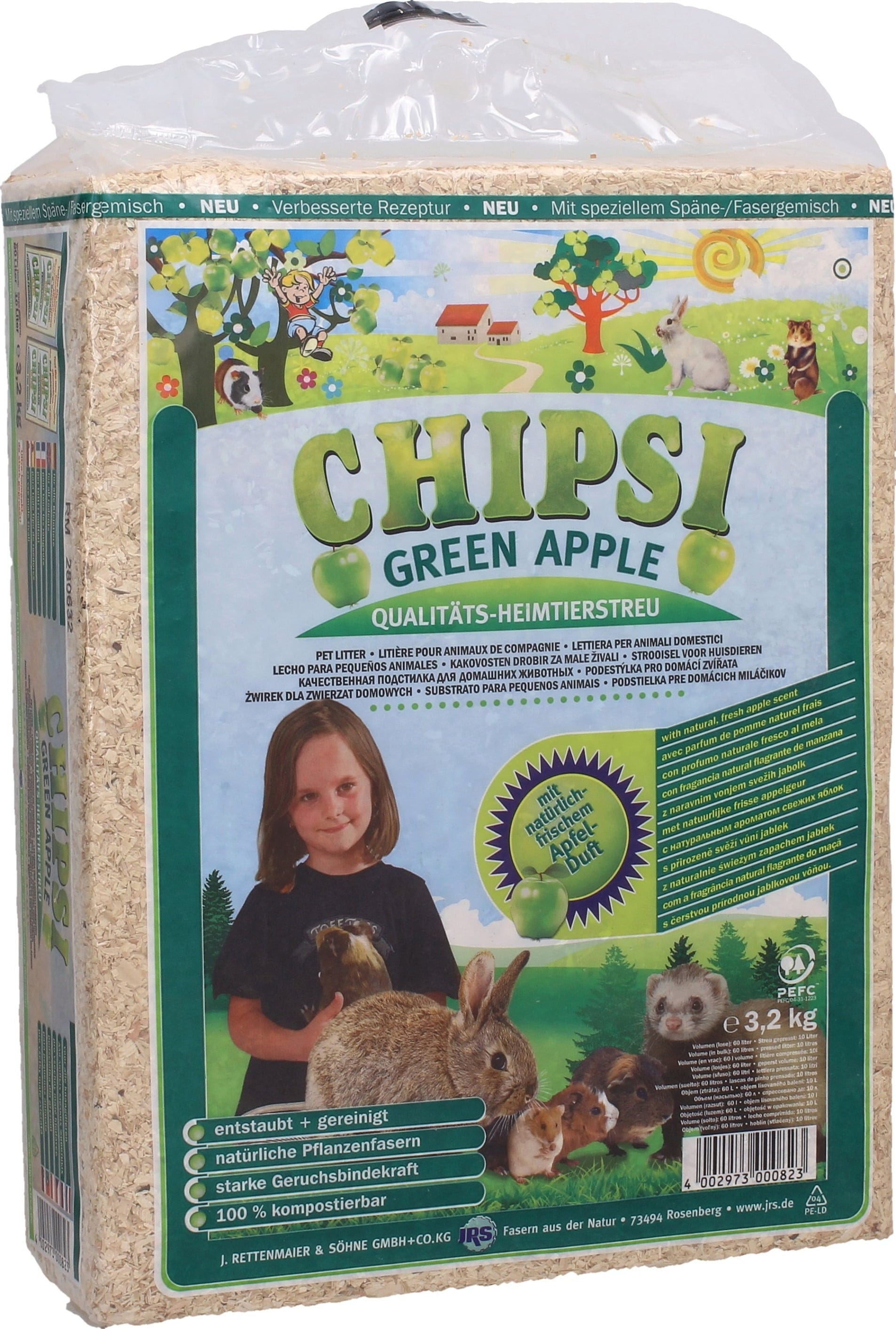 Questa lettiera ha un fresco profumo di mela verde e mantiene la gabbietta del tuo roditore piacevolmente asciutta: ideale per gabbie situate in zone abitate! PLUS GREEN APPLE è realizzata con trucioli di legno tenero puliti e spolverati. Il prodotto è altamente assorbente e, oltre al suo naturale profumo di mela, cattura efficacemente gli odori.