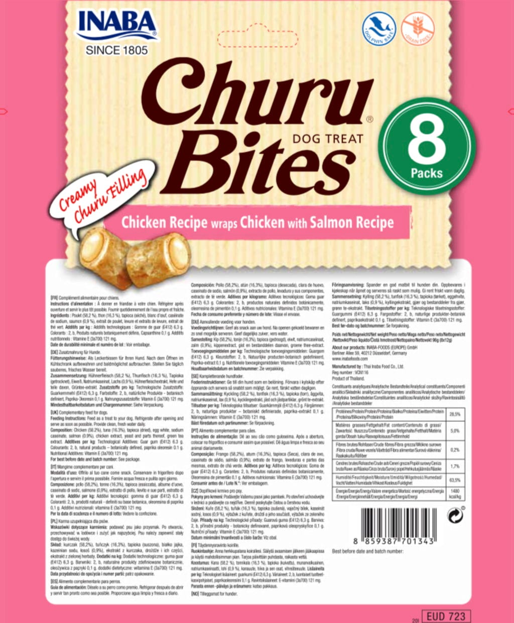 Churu Bites per Cani 8x20 g, Wrap di Pollo con salmone (96 g)