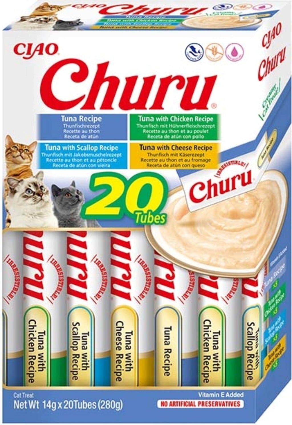 Churu Box - Snack Cremoso per Gatti 20x14 g, Varietà di tonno (280 g)