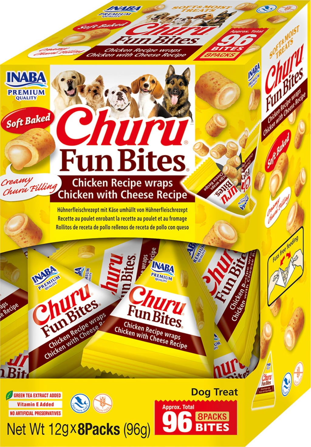 Churu Dog Fun Bites per Cani 8 x 12 g, Wrap di pollo con formaggio (96 g)