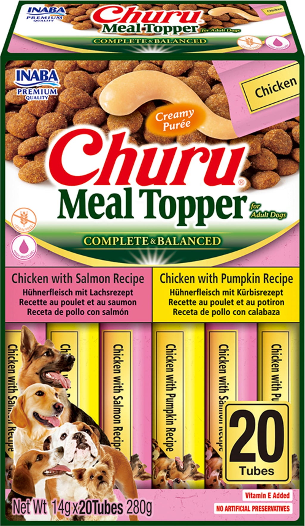 Churu Snack Cremoso per Cani - Meal Topper 20 x 14 g, Pollo con salmone & pollo con zucca (280 g)