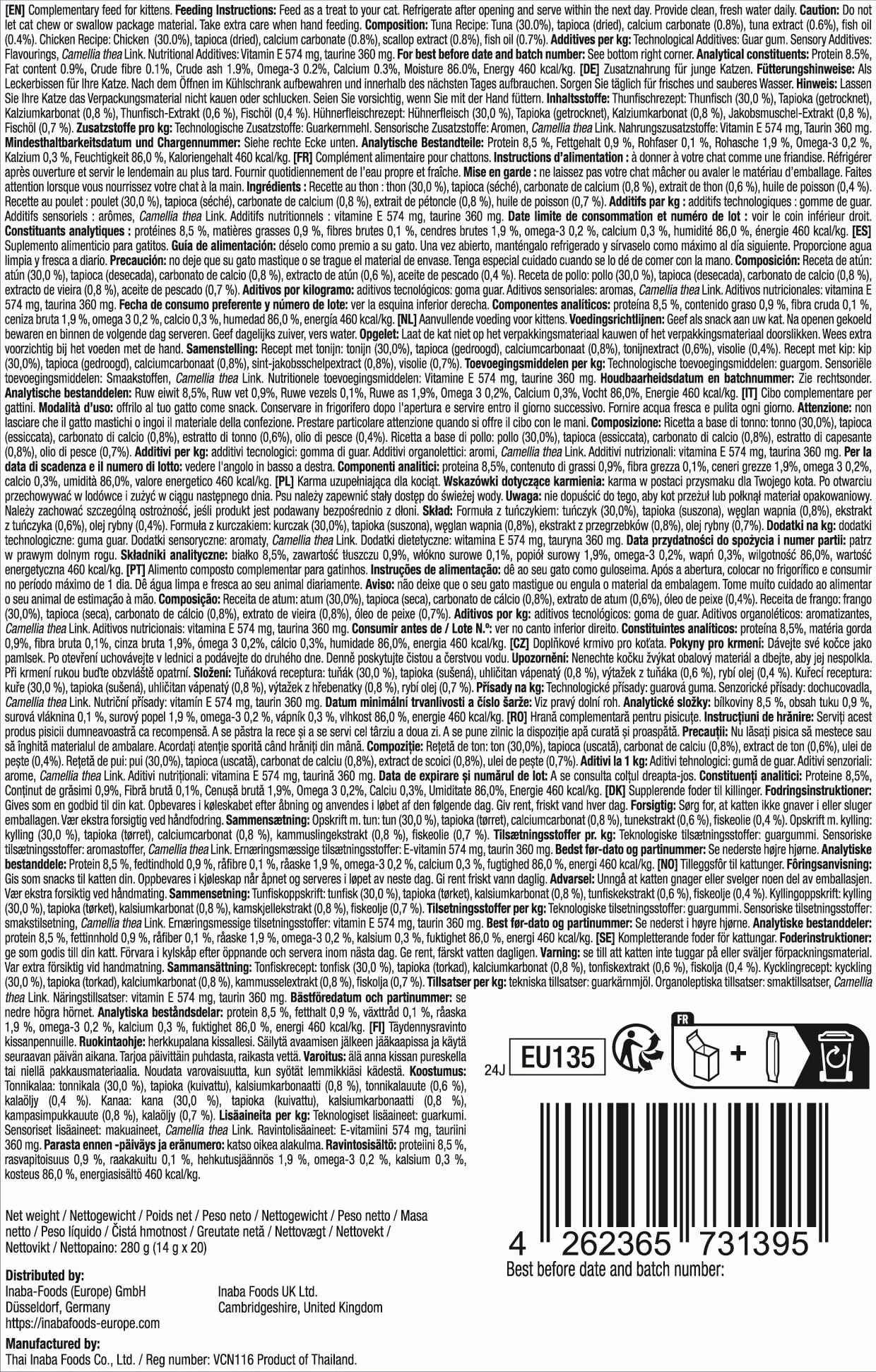 Che delizia! Questo irresistibile snack da leccare farà battere forte il cuore dei piccoli buongustai. Ingredienti selezionati e una ricetta adatta alla specie lo rendono uno snack davvero speciale, con cui potrai coccolare il tuo gattino in modo appropriato alla sua età.