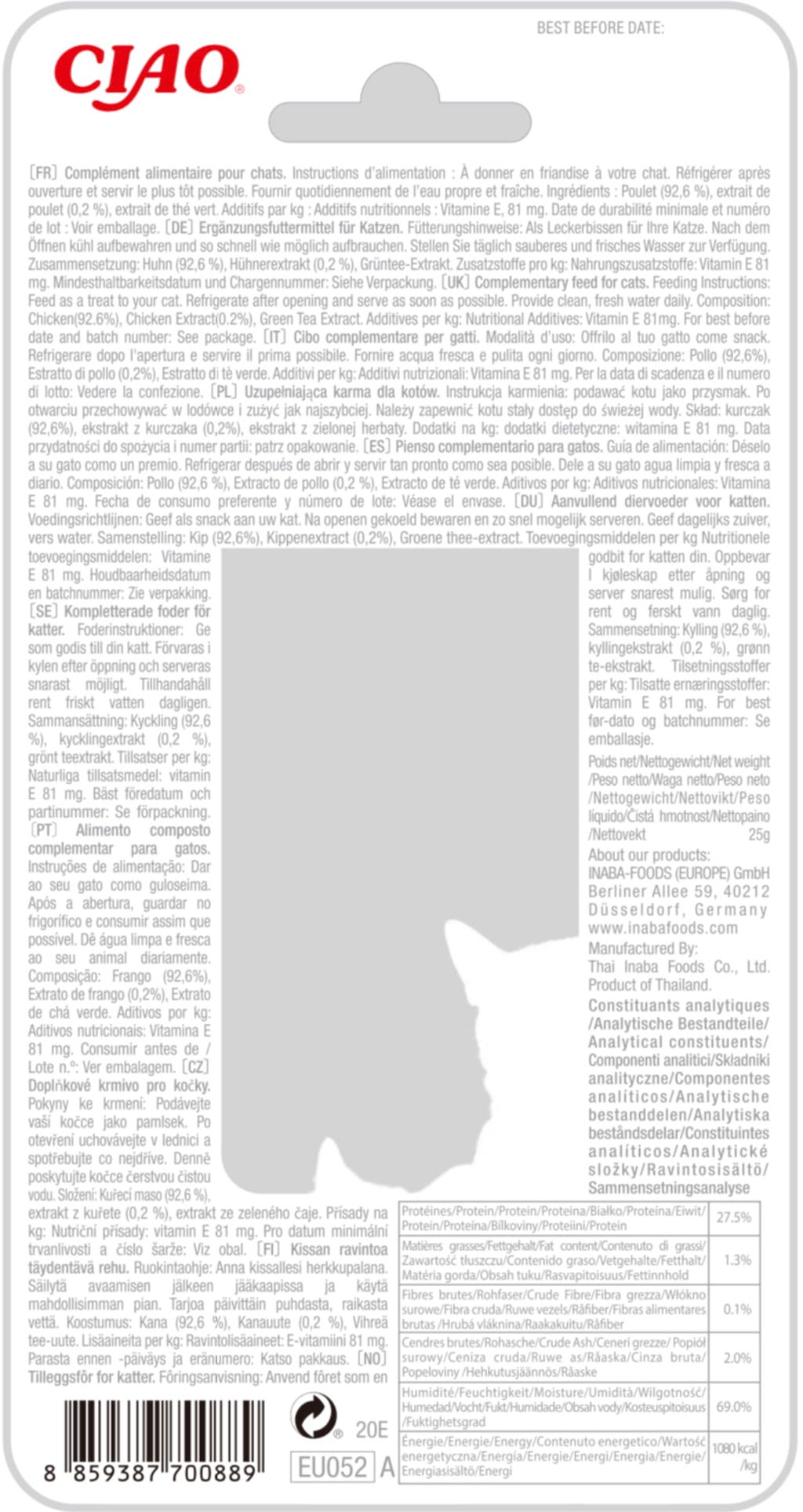 Churu Snack per Gatti - Filetto di Pollo Grigliato, Brodo di pollo (25 g)