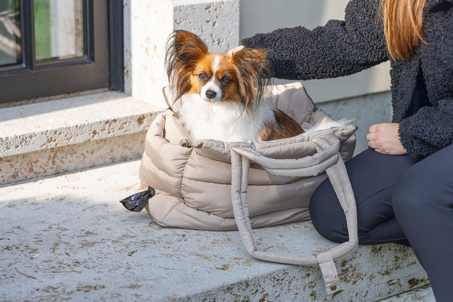 - Borsa trasportino elegante per cani di piccola taglia.