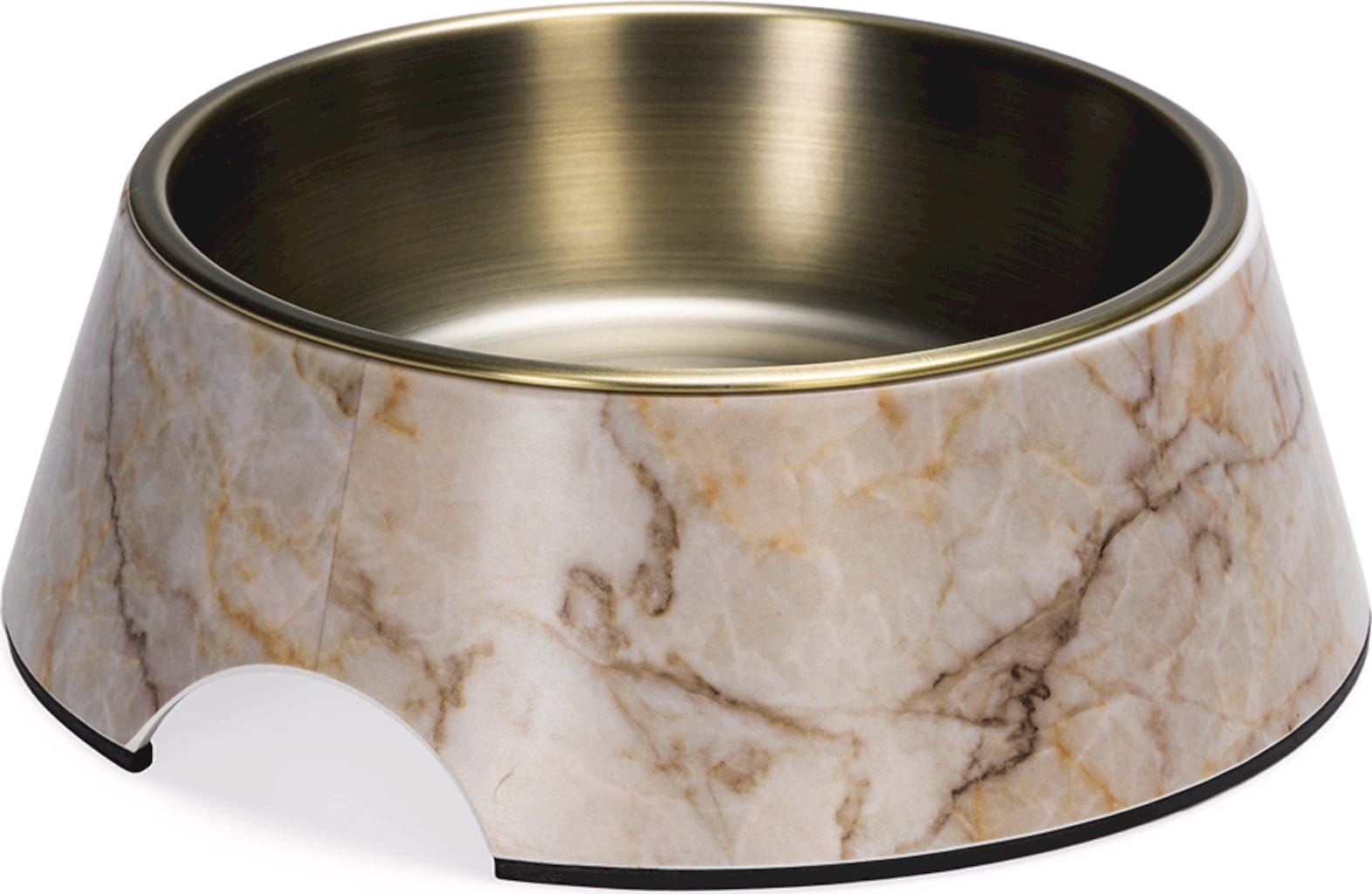 Questa elegante ciotola per cani colpisce per il suo lussuoso aspetto marmorizzato che dona agli ambienti un tocco chic. La ciotola interna in acciaio inossidabile opaco è rimovibile, offrendo così maggior praticità e igiene. Il rivestimento antiscivolo sul fondo impedisce lo scivolamento e assicura che la ciotola rimanga sempre al suo posto.