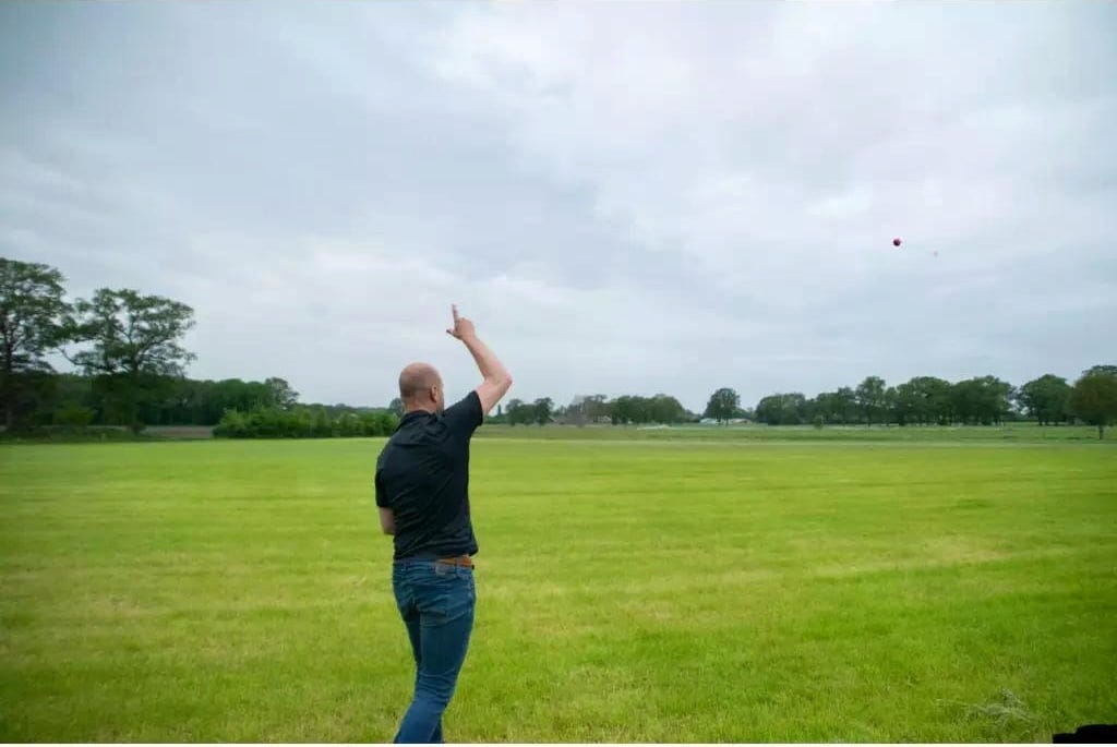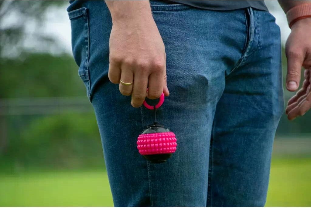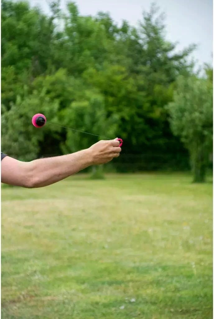 - Con un cordino integrato che si riavvolge automaticamente nella palla.
