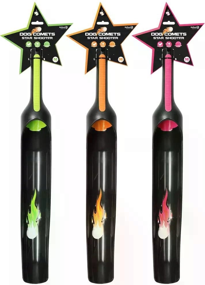 Questo giocattolo porta l'addestramento del riporto con il tuo cane a un livello completamente nuovo! Con il Star Shooter di Dog Comets, puoi lanciare senza sforzo palline fino a 60 metri, ovvero tre volte la distanza di un lancio normale. Che tu preferisca il lancio sopra la testa o dal basso, il design ergonomico e il pratico rivestimento antiscivolo ti assicurano sempre il pieno controllo. Divertimento garantito per il tuo amico peloso!