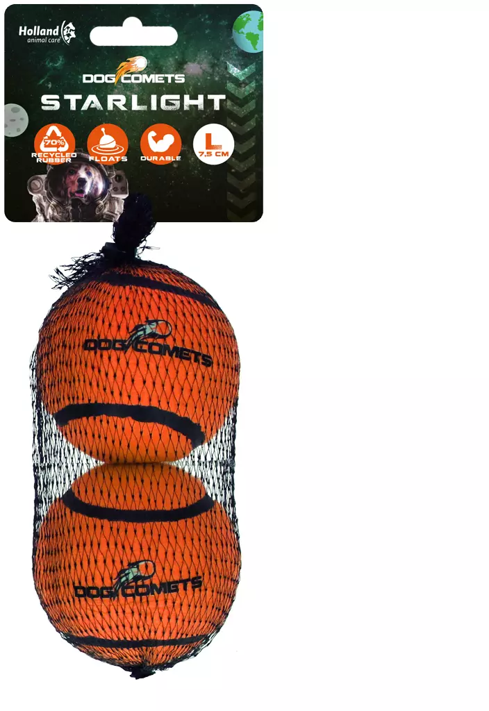 Dog Comets Starlight Tennis Ball Orange, L (confezione da 2)