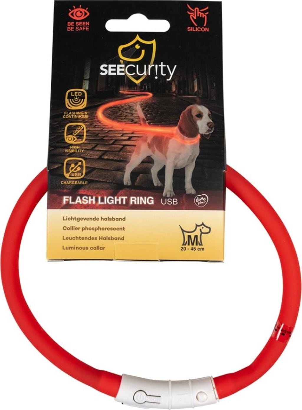 Duvoplus Collare LED Flash USB in Silicone, Rosso, M
