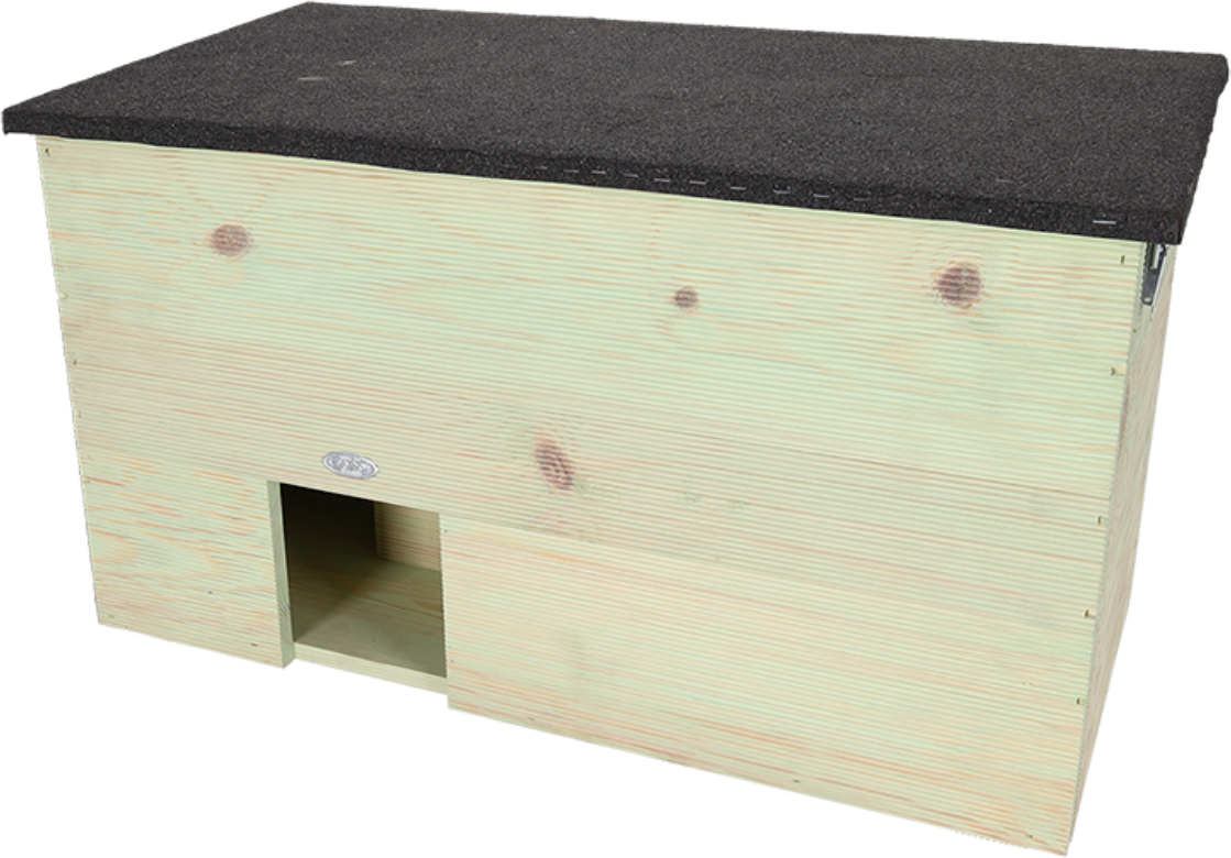 I ricci adorano mangiare lumache e parassiti, rendendosi uno degli animali preferiti del giardino. Questa casetta XL ospita e protegge non solo i ricci, ma anche i loro cuccioli. Il sistema a labirinto all'interno assicura che tassi e altri animali non possano penetrare nella zona notte.