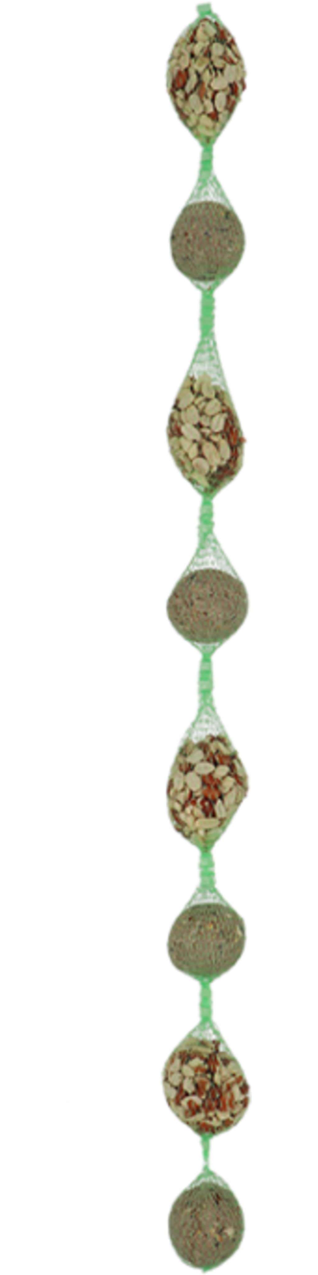 La collana di arachidi con palline di grasso è un modo pratico per nutrire gli uccelli nel tuo giardino. La collana è particolarmente apprezzata dalle cinciallegre e da altri uccelli selvatici, che apprezzano le nutrienti arachidi e le palline di grasso.