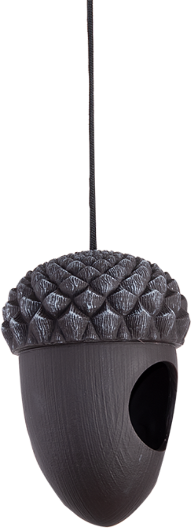 Questa mangiatoia a forma di ghianda può essere facilmente appesa a un albero o a una trave per offrire agli uccelli un posto indisturbato dove consumare un buon pasto. Il tettuccio protegge il mangime dalle intemperie, mentre l'ampia apertura facilita il riempimento dell'accessorio.