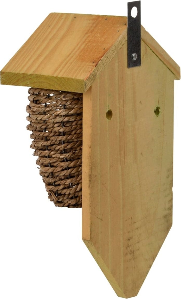 Realizzata in legno e zostera, questo nido offre protezione allo scricciolo. Perfetta non solo per decorare il giardino, ma anche per preservare la specie.