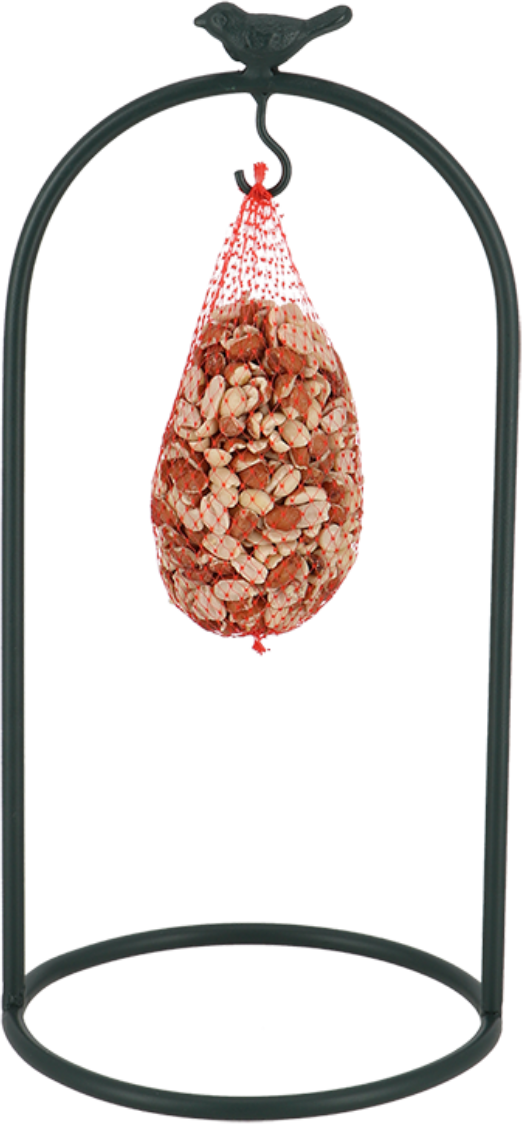 Questo sostegno per mangime per uccelli è allo stesso tempo pratico e decorativo. Le palline di mangime di possono facilmente appendere al gancio. È meglio posizionare questo elemento in un luogo in cui gli uccelli selvatici possano consumare il pasto in tutta tranquillità e sicurezza.