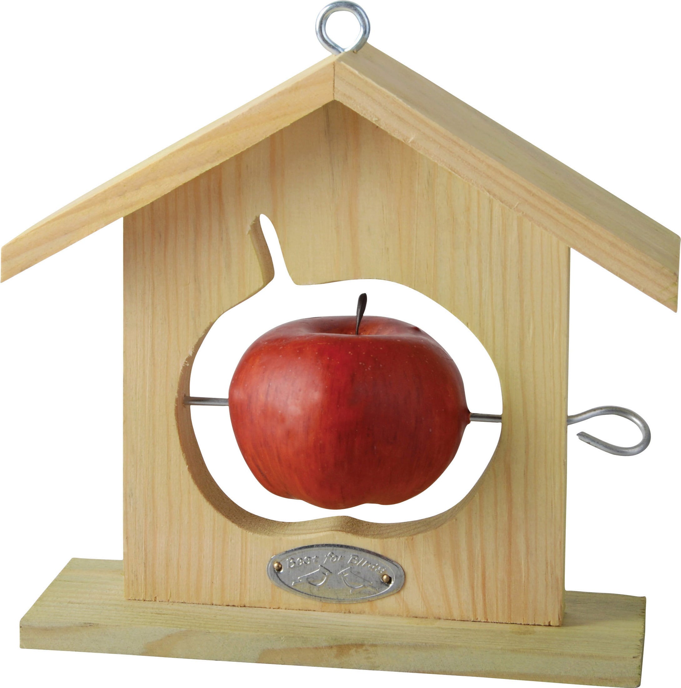 Questa stazione per uccelli può essere riempita con del cibo, come mele e altri frutti, utilizzando il supporto metallico estensibile laterale. Per garantire una distanza sufficiente dai potenziali predatori, le mangiatoie non devono essere montate troppo in basso. Pulirle con acqua tiepida almeno una volta all'anno.