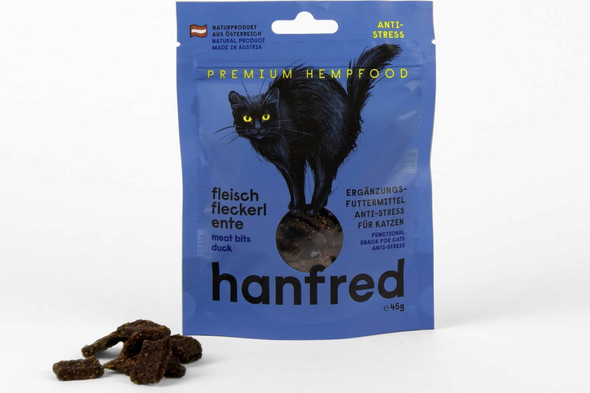 Se il tuo gatto reagisce in modo sensibile a cambiamenti o situazioni stressanti, questo snack può rappresentare una scelta adatta. I bocconcini di carne Hanfred sono composti per il 95% da carne e per il 5% da polvere di canapa, senza cereali né additivi artificiali.