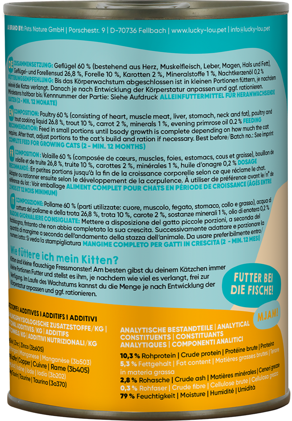Lucky Lou Lifestage Kitten - Pollame e Trota in Lattina, 400 g