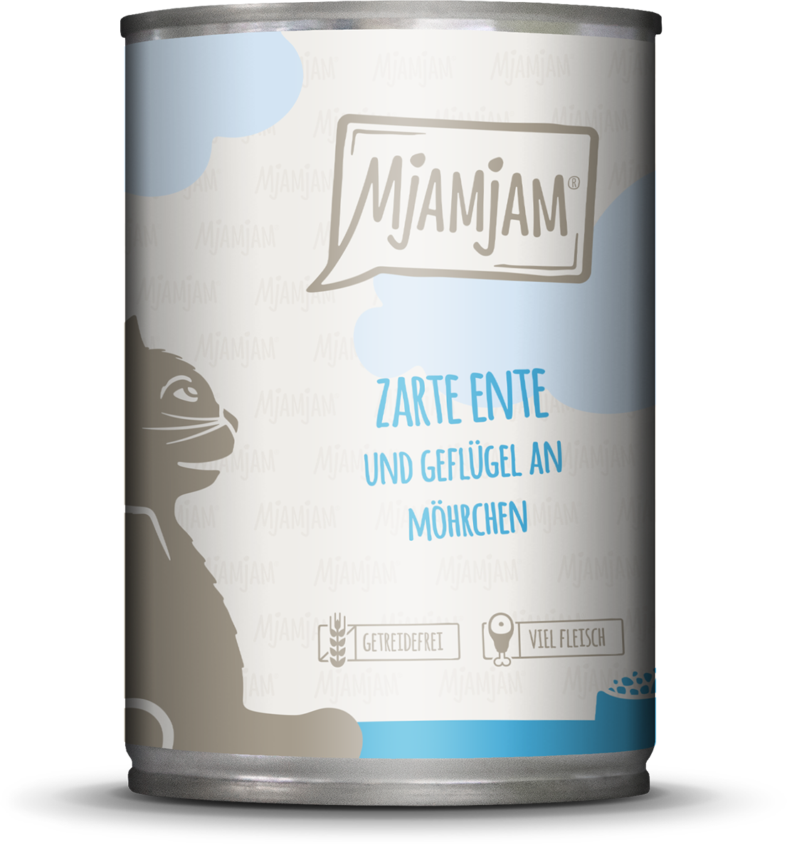 Il cibo umido di Mjamjam coccola il tuo gatto con un gusto ricco, una qualità incomparabile e un pizzico d'amore. Il tuo gatto riceverà un pasto completo a base di carne fresca di anatra, tenero pollame e carote croccanti.