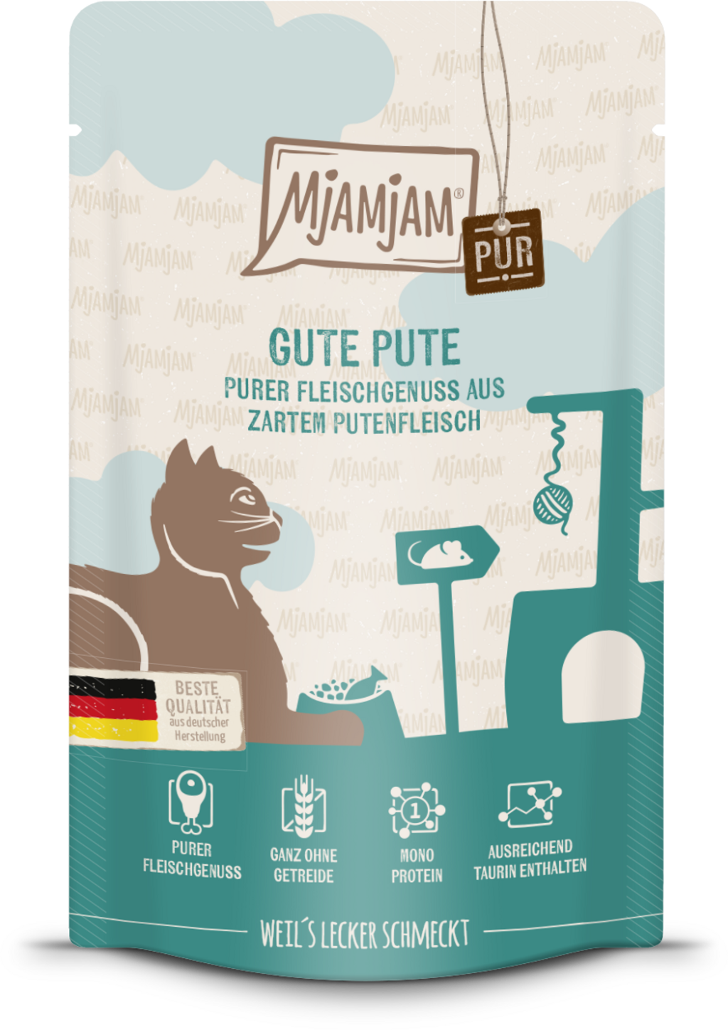 Le bustine di Mjamjam coccolano il tuo gatto con un gusto ricco, una qualità incomparabile e un pizzico d'amore. L'alto contenuto di carne all'interno è semplicemente incredibile! La carne di tacchino fresca e tenera delizierà le papille gustative del tuo amico felino e fornirà pasti preziosi e adatti alla sua specie.