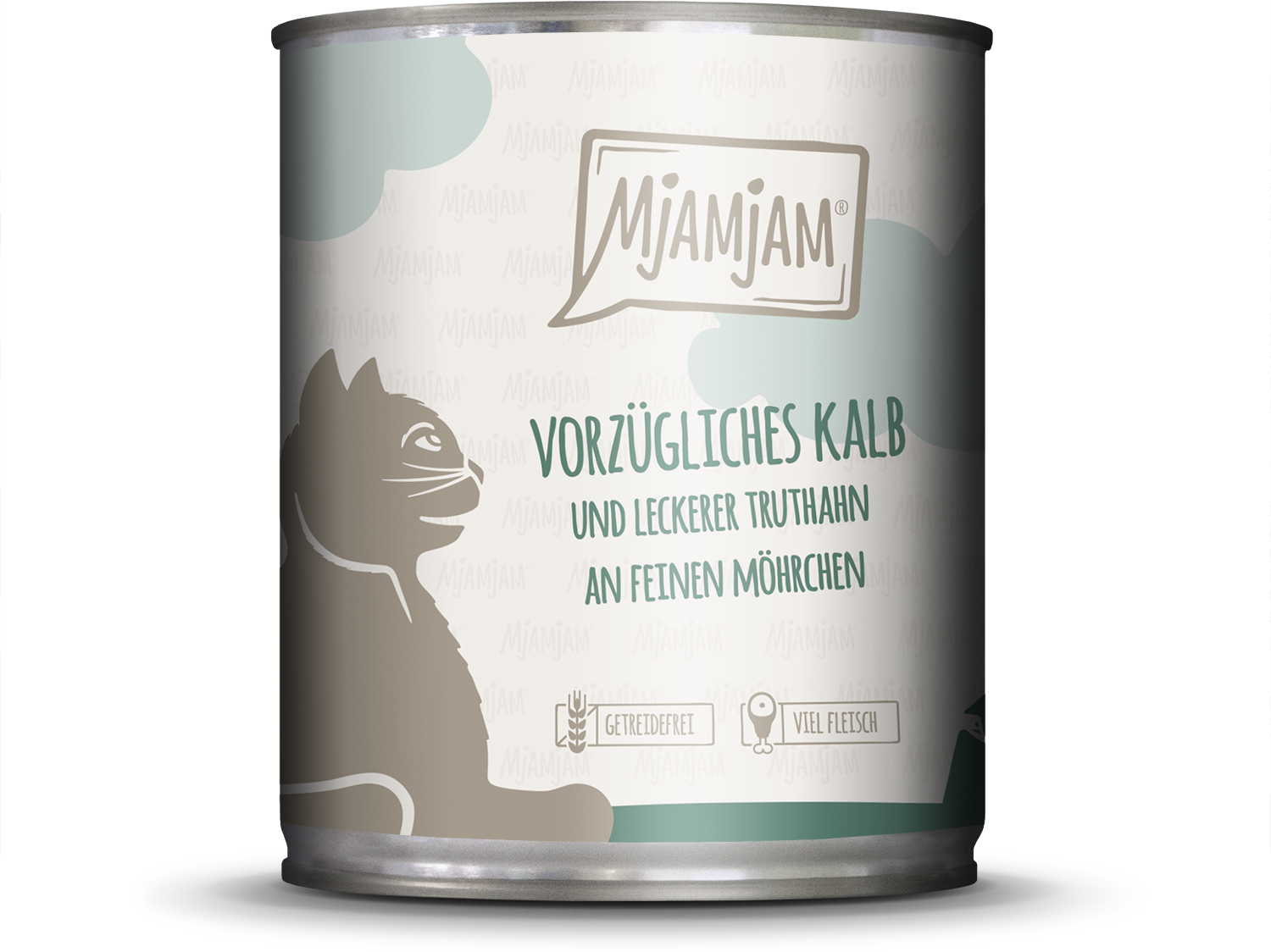 Il cibo umido di Mjamjam coccola il tuo gatto con un gusto ricco, una qualità incomparabile e un pizzico d'amore. Il tuo gatto riceverà un pasto completo a base di abbondante vitello, delizioso tacchino e carote croccanti.