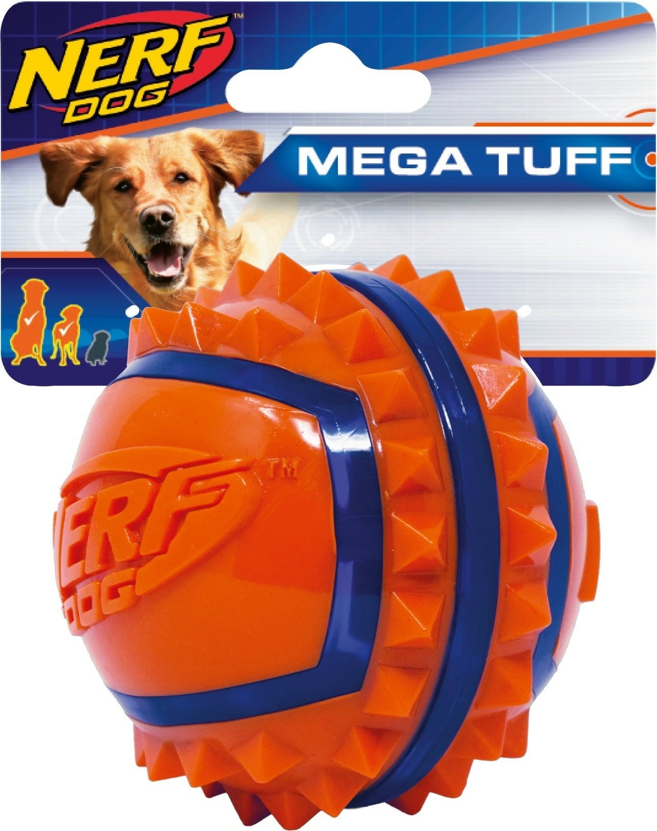 La pallina NERF blu e arancione con punte è un giocattolo interattivo dal design funzionale, che offre divertimento e intrattenimento al tuo amico a quattro zampe! La palla in resistente gomma termoplastica incoraggia il cane a masticare!