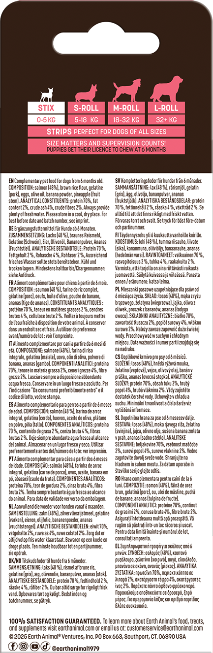 Gli Stix di No-Hide™ sono un'alternativa innovativa e sicura ai tradizionali masticativi in pelle grezza. Questo prodotto è appositamente studiato per offrire al tuo cane un'esperienza di masticazione duratura e gustosa, senza il rischio di scheggiature tipico dei tradizionali masticativi in pelle grezza. Che tu sia a casa o in viaggio, questi Stix sono sempre una coccola speciale per il tuo amico a quattro zampe.