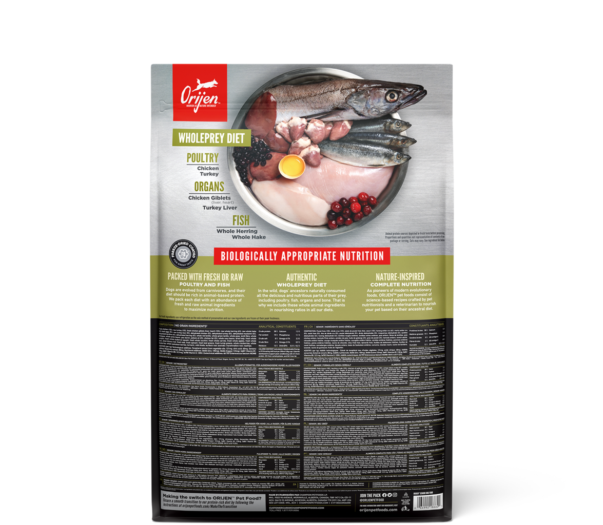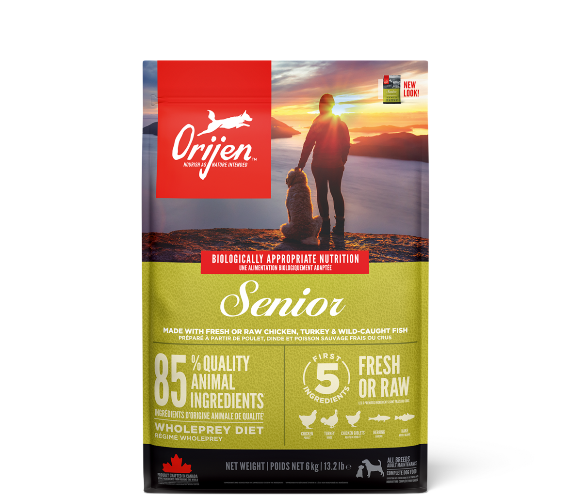 Il cibo Dog Senior di Orijen è particolarmente adatto ai cani anziani. È composto da ingredienti freschi e di alta qualità, con componenti di pollame e pesce.