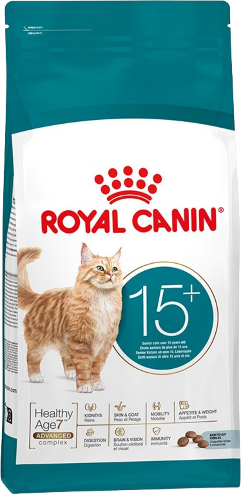AGEING 15+ di ROYAL CANIN® è un alimento secco per gatti dai 15 anni in su. ROYAL CANIN® AGEING 15+ è stato sviluppato e testato per gatti anziani. Contiene crocchette facili da masticare per offrire al tuo gatto un'esperienza piacevole. Questa ricetta è anche altamente appetibile.*