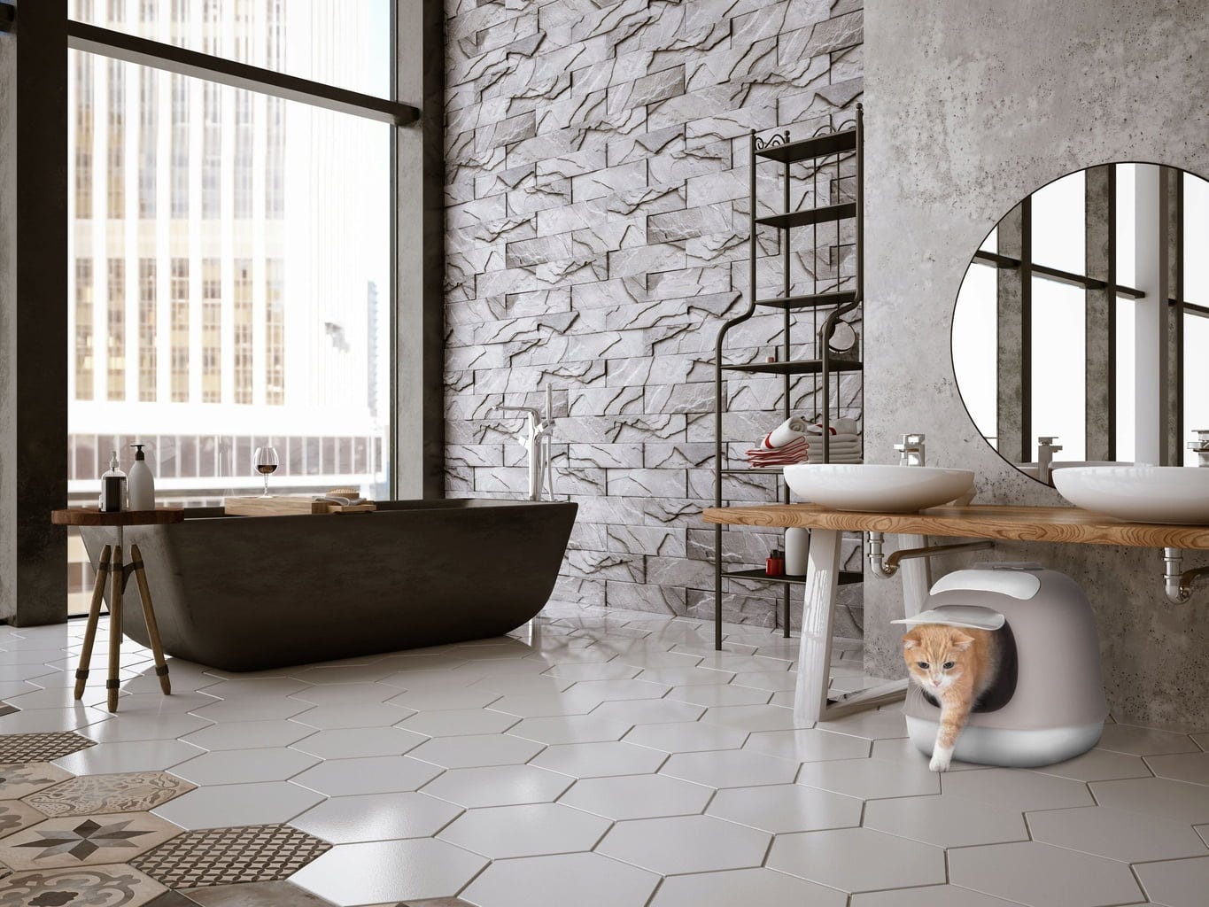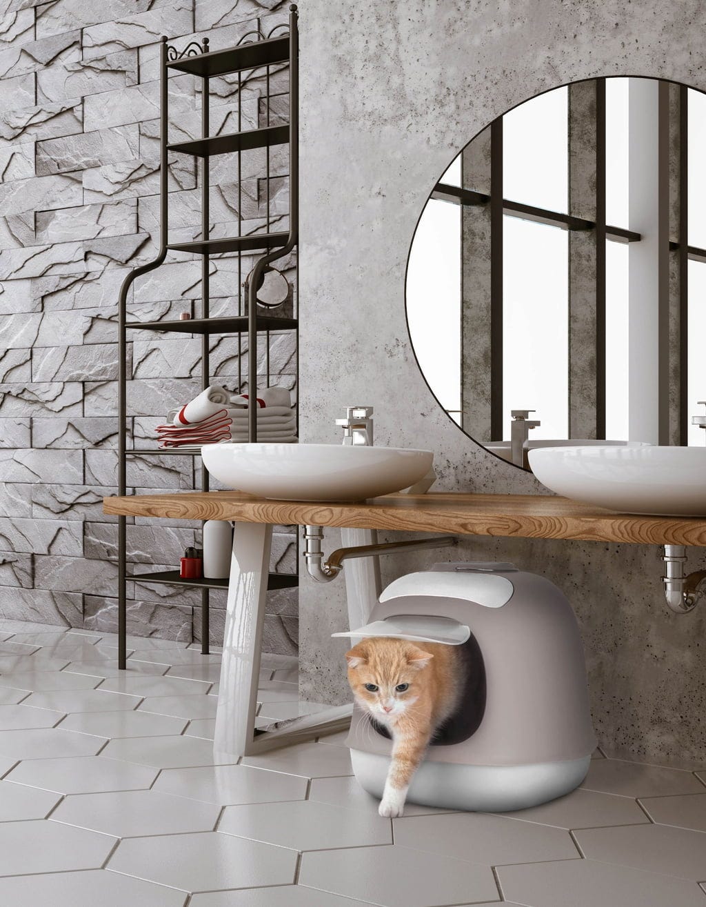 United Pets MINÙ - Lettiera Coperta per Gatti, Grigio/bianco