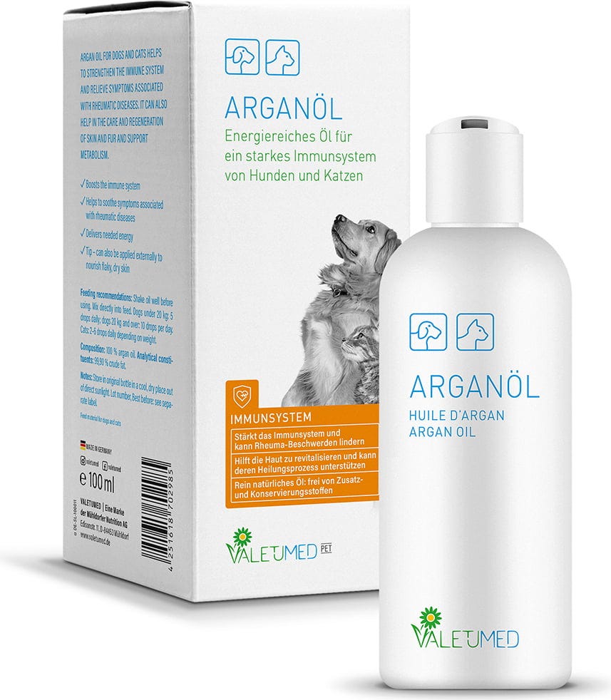 Questo olio di argan di alta qualità è ottenuto dai semi dell’albero di argan marocchino e fornisce preziosi nutrienti per cani e gatti. Poiché il tuo animale non è in grado di produrre autonomamente acidi grassi essenziali come omega-3 e omega-6, questo olio rappresenta un’integrazione ottimale alla dieta quotidiana. Questi acidi grassi possono contribuire a supportare il normale metabolismo e il sistema cardiovascolare.