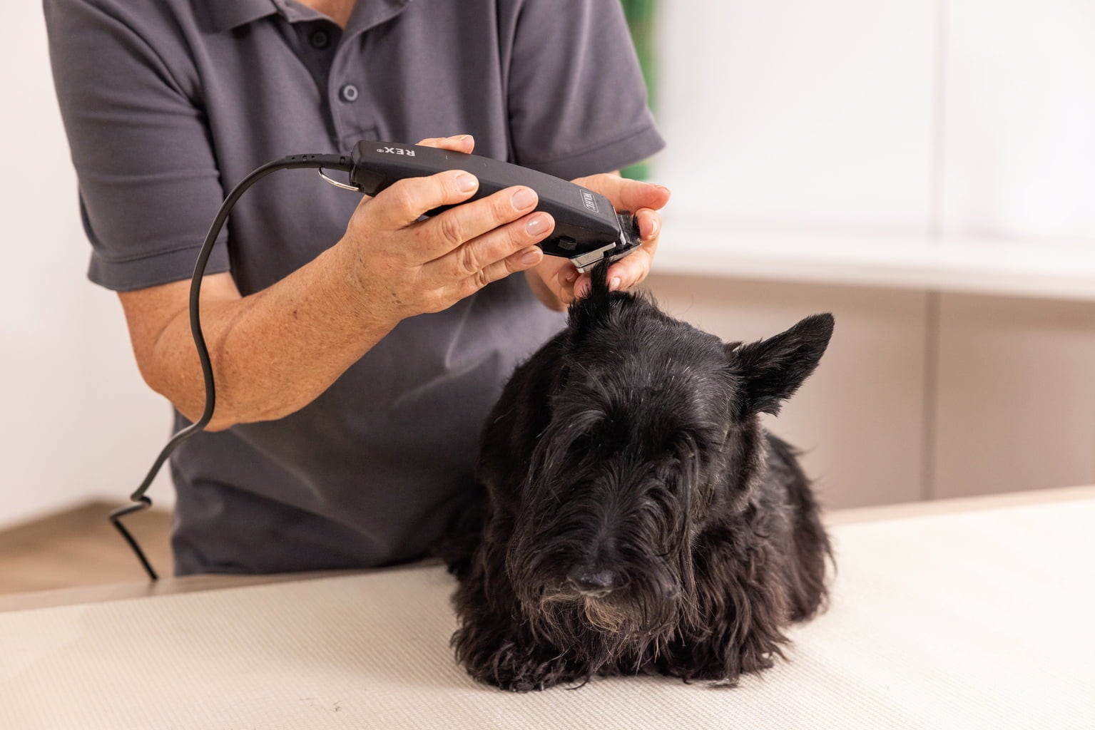 Rex di Wahl Professional è una tosatrice adatta alla tosatura completa di gatti e cani di taglia media. Questo dispositivo ad alte prestazioni è dotato di un potente motore a oscillazione polarizzata ed è fornito con un cavo rotondo flessibile da 3 m, completo di anello per appenderlo. Grazie al funzionamento particolarmente silenzioso, la tosatrice riduce lo stress degli animali sensibili ai rumori, rendendo la tosatura più confortevole sia per l’animale che per il proprietario.